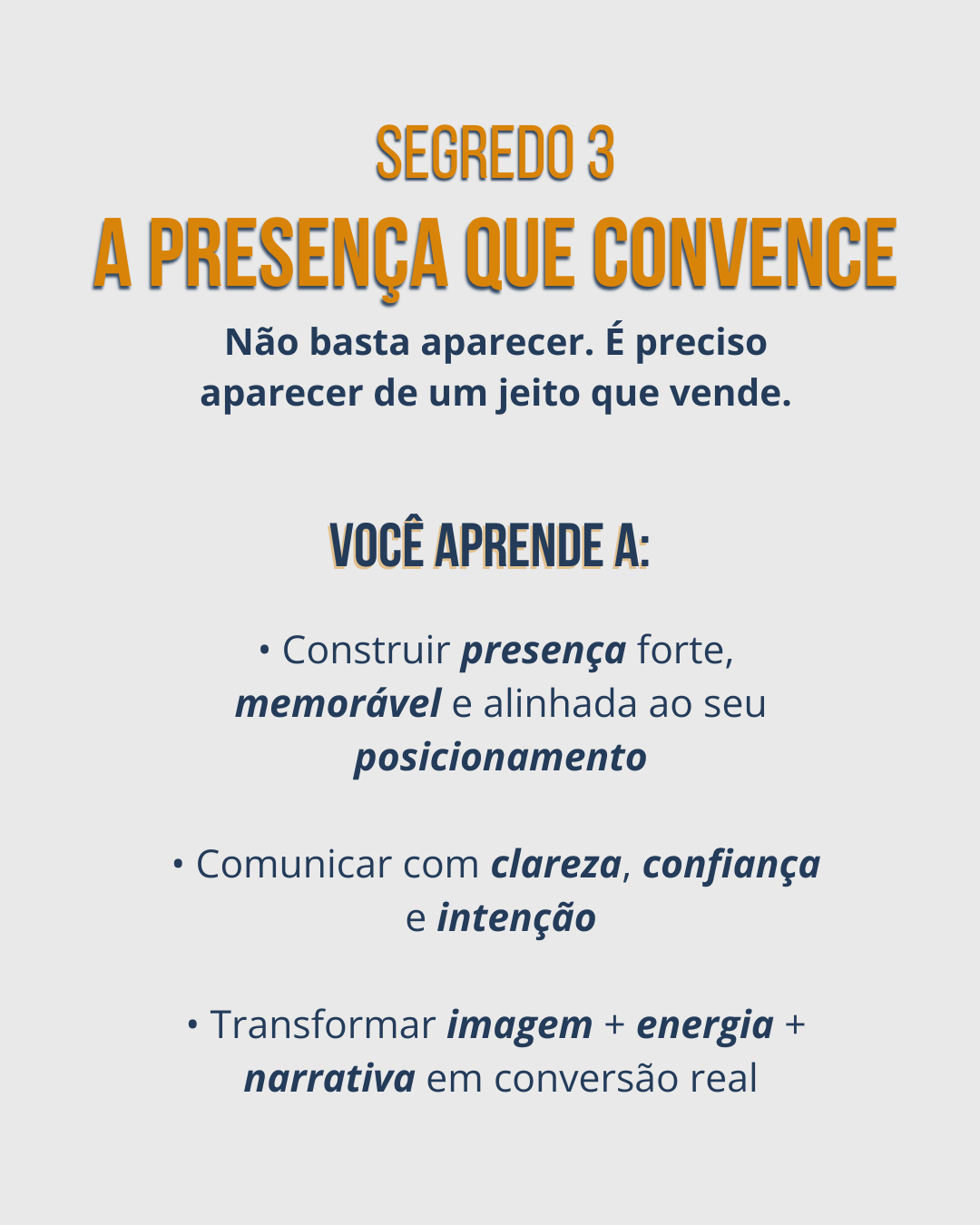 Aprenda a alinhar percepção, presença e comunicação para que sua imagem gere autoridade, desejo e faturamento,